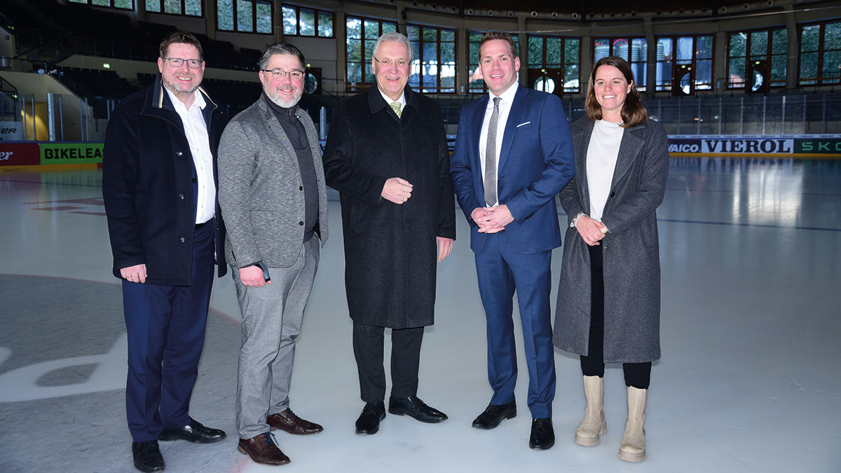 Der Bayerische Staatsminister des Innern, für Sport und Integration Joachim Herrmann sichert umfassende Förderung für Eishockey- und Curling-Anlage zu – Stadt war kurz vor der Schließung