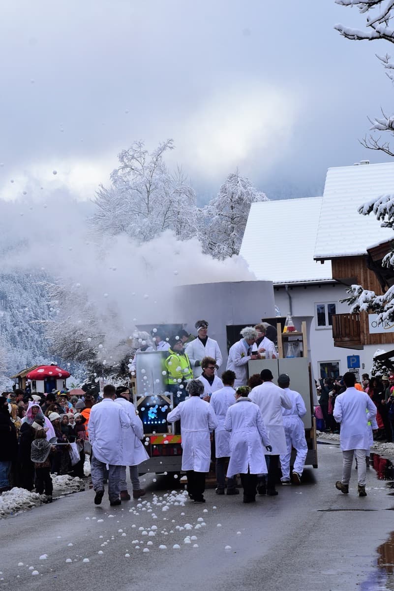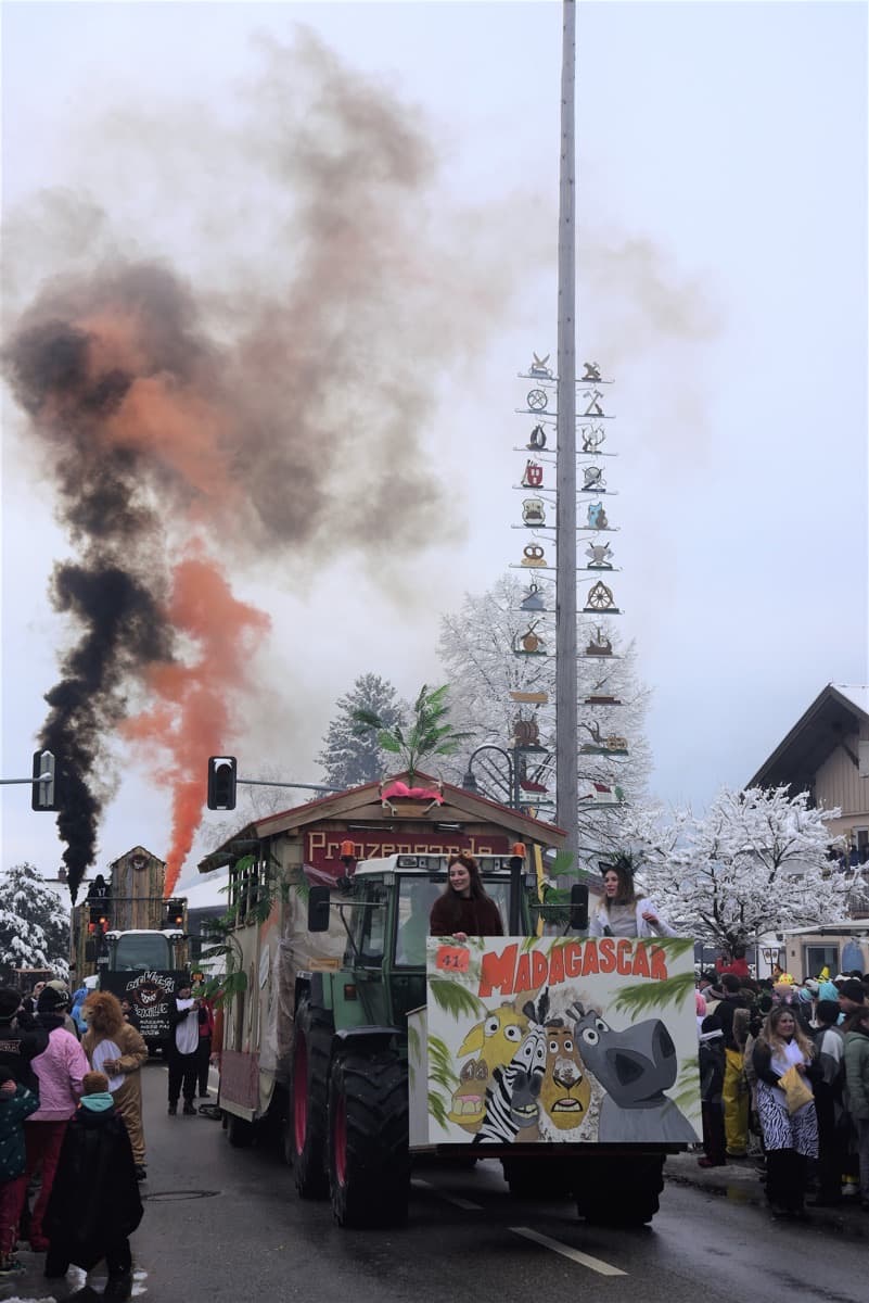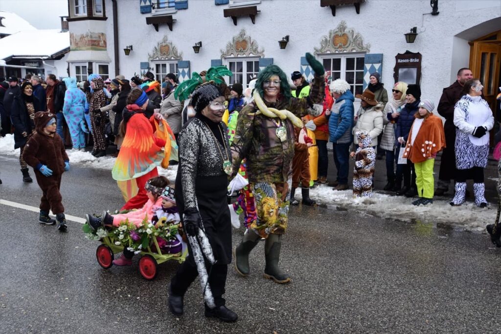 53 Gruppen kamen aus der Region, um beim diesjährigen Schwangauer Faschingsumzug dabei zu sein. Trotz kalter Witterung kamen viele Besucher, teils maskiert, um mitzufeiern und den Faschingsgruppen zuzujubeln.
