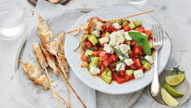 Ein raffinierter Salat mit Melone, Fetakäse und Kräutern, der toll zum Grillen im Sommer passt. Zutaten 1,2 kg Wassermelone ohne…
