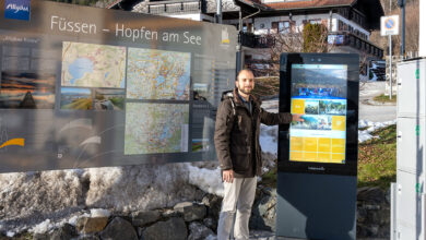 Philipp Klein, Produktmanager für Online Marketing und Informations- und Kommunikationstechnologie bei Füssen Tourismus und Marketing (FTM), überprüft den neuen Informator…