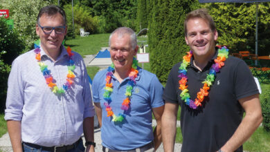 „Beach Minigolf am Forggensee“ eingeweiht Bürgermeister Maximilian Eichstetter, Zweiter Bürgermeister Christian Schneider und der Leiter der Forggensee-Schifffahrt Füssen (FSF), Helmut…
